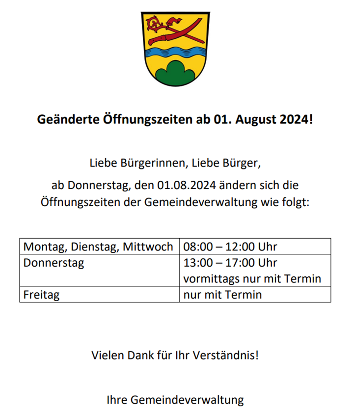 neue Öffnungszeiten des Rathauses